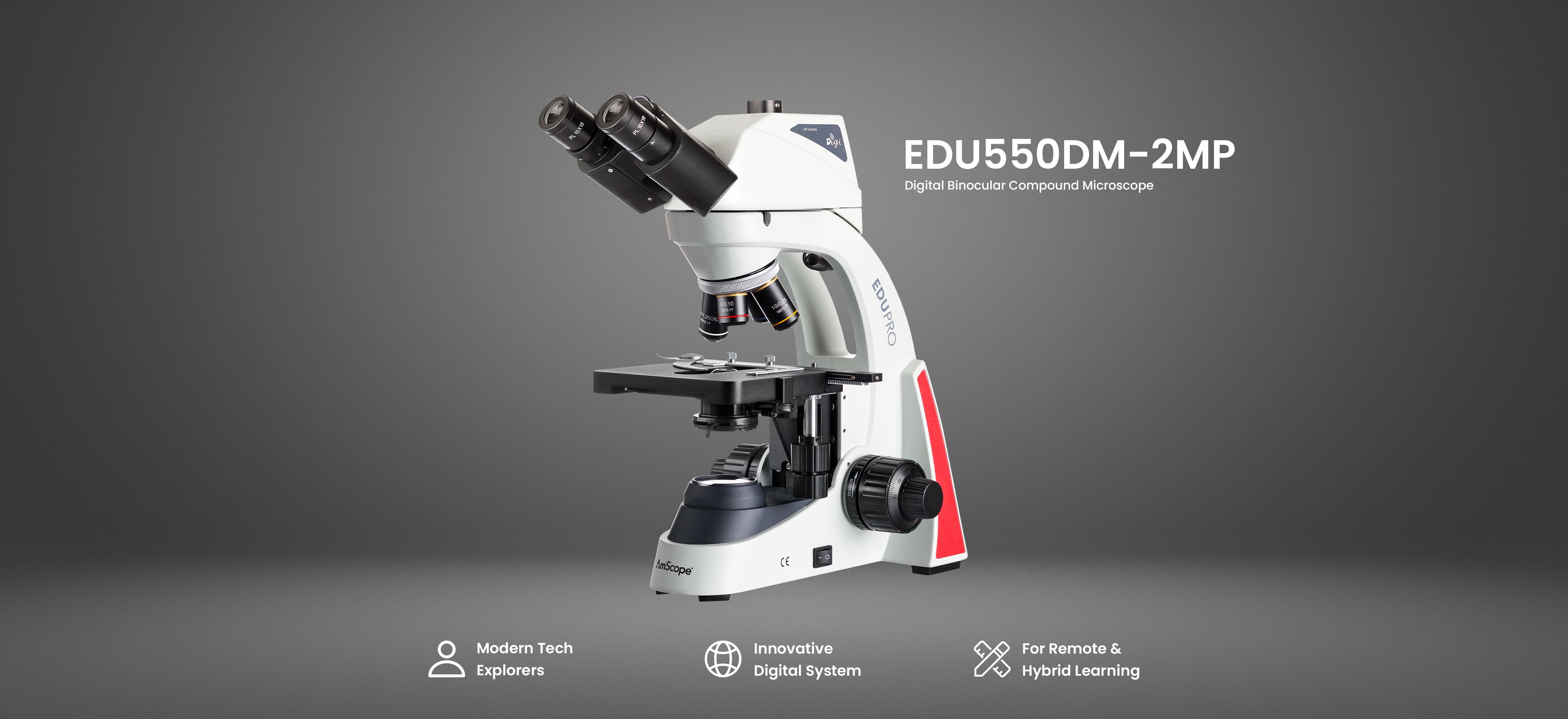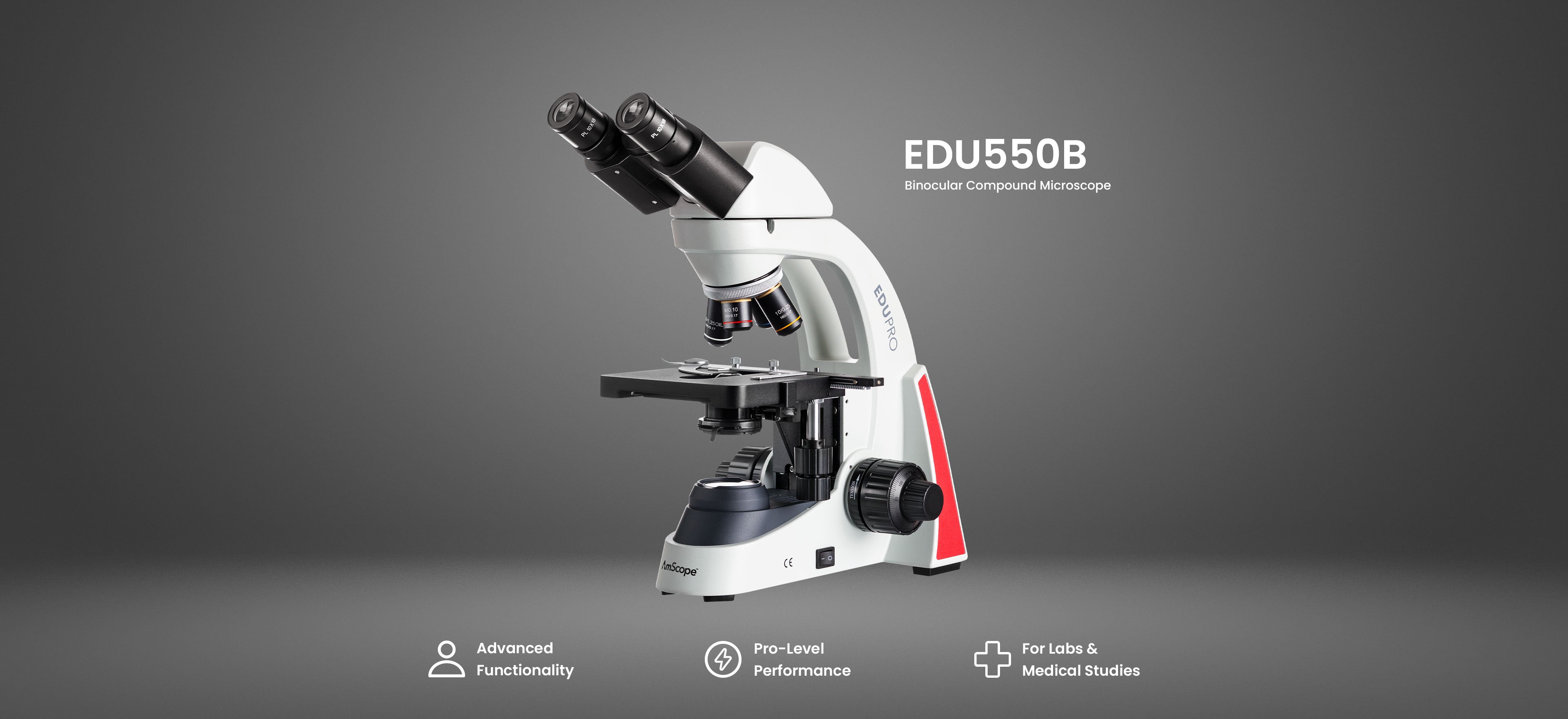 - Head: Binocular, 30° incline — ergonomic viewing for extended sessions.